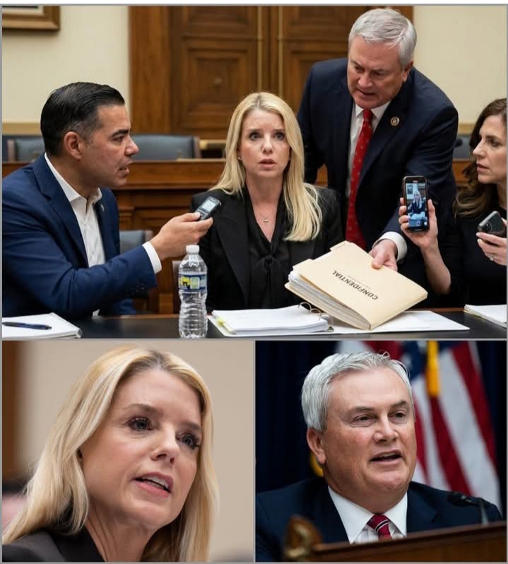 What was erased… was never meant to be seen. Inside a tense congressional hearing, Pam Bondi delivered a statement that shattered the room—claiming that the redacted Epstein files weren’t just about hiding secrets… but protecting something far more dangerous. Then came the moment no one expected.